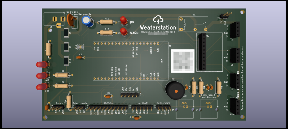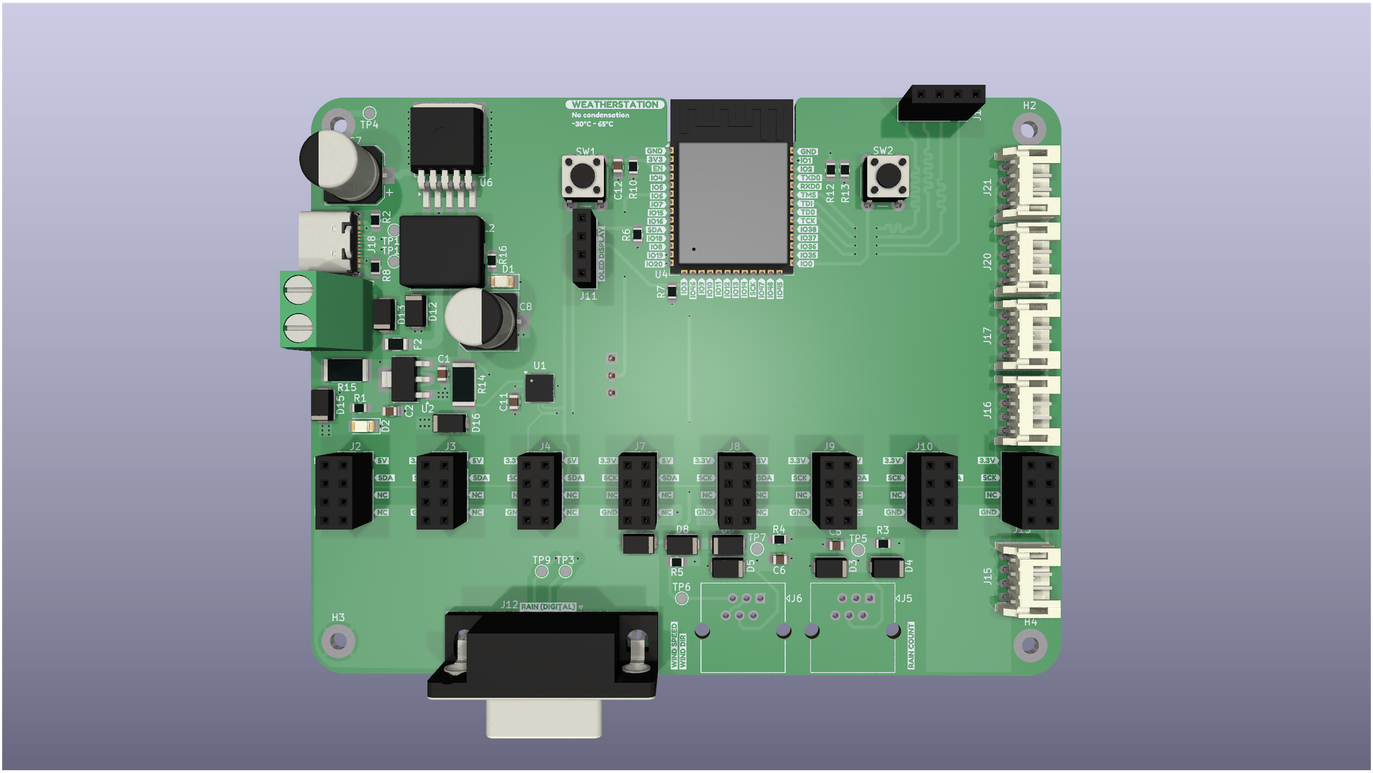 In 2025, I started moving my sensors to modules, so I can reuse them between iterations of the PCB. Additionally, I added more connectors and better suited IO. I also created my first own 5V buck converter with the LM2595S-5. I also swapped the ESP32 WROOM 32E with the ESP32 S3 WROOM 1, which has a built in UART controller for direct USB connection, which reduced cost by about 4 dollars per PCB.