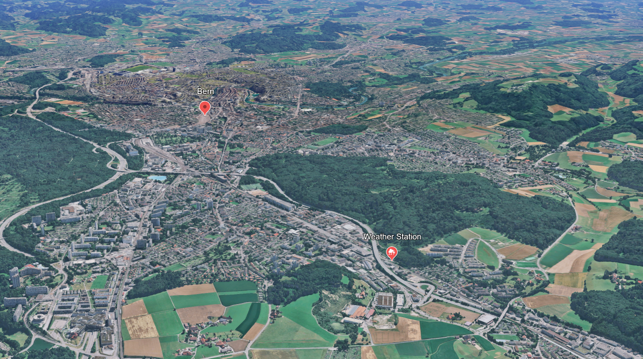 The weather station is located near Bern and is exposed to a windy spot. It consists of multiple sensors and pushes data every few seconds using WLAN via ESPHome to HomeAssistant. Using an InfluxDB adapter, the data is then pushed to a time series database, which is consumed by Grafana and visualized as above.